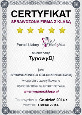 To już trzeci rok z rzędu otrzymaliśmy Certyfikat który przyznał nam Portal ślubny Wesele z Klasą.